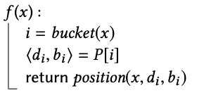查询时:对于给定的 key,使用固定出的 Hash 函数计算出 h, h0, h1,根据 P[h] 得到 pilot 与 d0, d1,使用 poisition 易求得 Hash 值,即完成了一次查找(至少 4 次除法 or 求余操作,h < m)
